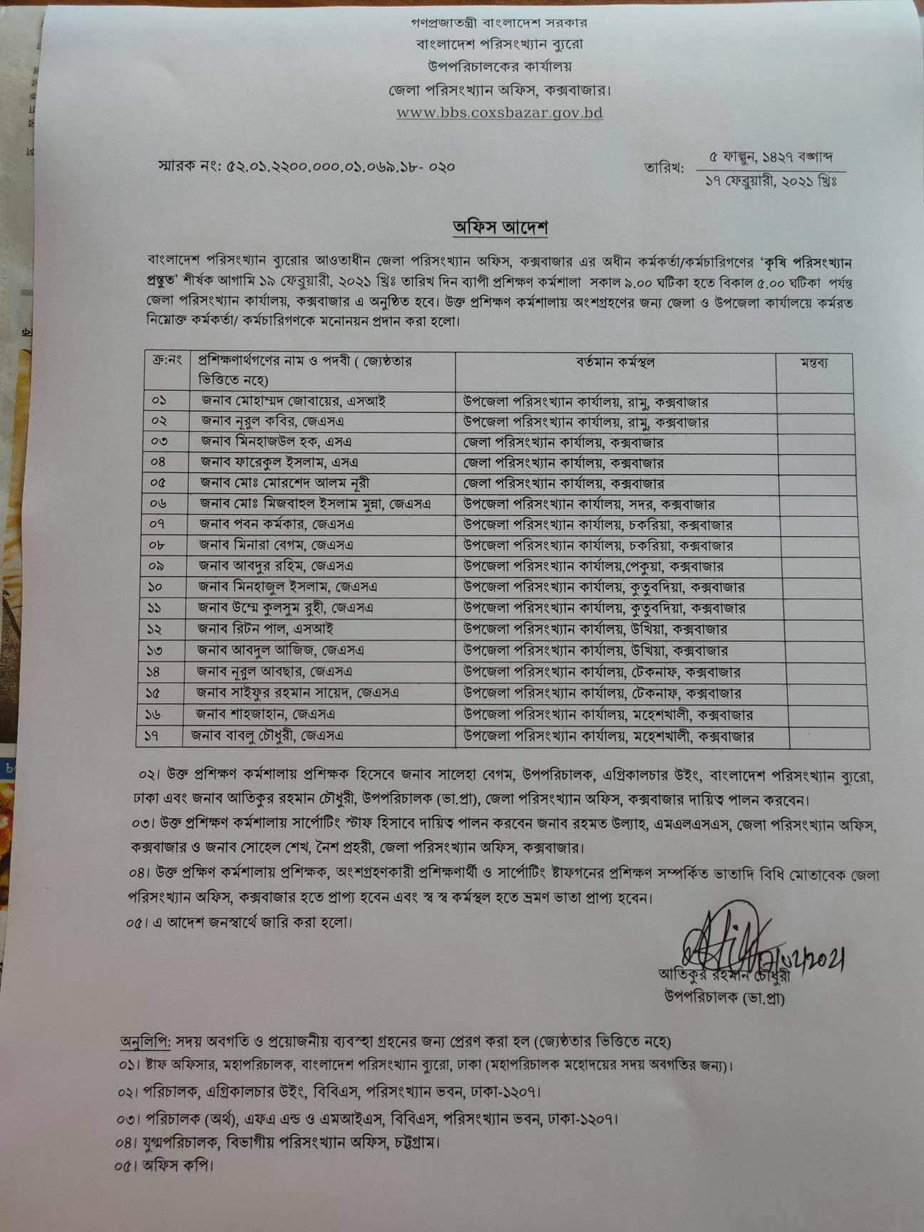 ‘পরিবেশ, জলবায়ু পরিবর্তন ও দুর্যোগ পরিসংখ্যান শক্তিশালীকরণ (ইসিডিএস)\\' প্রকল্পের মোবাইল অ্যাপ্লিকেশনের মাধ্যমে তথ্য সংগ্রহ কার্যক্রমের প্রশিক্ষণ ও তথ্য সংগ্রহ কার্যক্রমের আদেশ।
