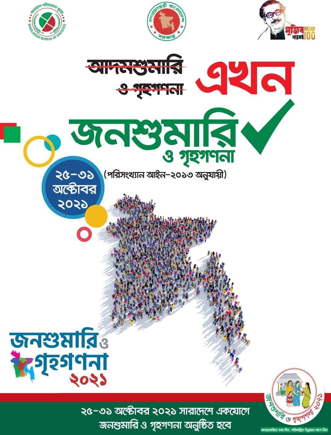 গণপ্রজাতন্ত্রী বাংলাদেশ সরকারের পরিকল্পনা মন্ত্রণালয়ের অধীনে বাংলাদেশ পরিসংখ্যান ব্যুরো কর্তৃক বাস্তবায়িত পরিসংখ্যান আইন-২০১৩ অনুযায়ী এখন থেকে \\"আদম শুমারী ও গৃহগণনা \\" নামের পরিবর্তে \\" জনশুমারী ও গৃহগণনা ২০২১\\" নাম ব্যবহার হবে।